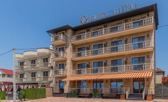 Были во многих отелях, но такого, чтоб приходишь на завтрак, а тарелки пустые абсолютно все, еды и чистой посуды нет совсем, даже сгущёнка и варенье закончились - не встречали. В это время обслуживающий персонал передвигаясь неспешно, заявляет, что они не виноваты в том, что все одновременно явились на завтрак: одна- делает кофе, другая - перекладывает по одной сосиски медленно и целенаправленно из принесенной тарелки в раздаточный лоток, при этом остальные блюда остаются пустыми. Почему нельзя принести сосиски сразу в лотке? Об ассортименте: сырники, запеканка, блинчики, есть два вида молочной каши, омлет, один вид колбасы, ветчины, сыра, сосиски, вареники, тушеные и свежие овощи, драники. Из выпечки - круассаны. Чай в ассортименте, кофе в пакетиках, но нет порционных сливок. Есть молоко, но хлопьев и мюсли нет, также отсутствуют йогурты и творог. ВСЕ блюда ВКУСНЫЕ!!! Отмечу Ресторан: В ресторанах помимо прочего всегда заказываем салат Цезарь и какой-либо салат с баклажанами, что позволяет сравнить приготовление одинаковых блюд. В ресторане Репин - супер!!! Но и тут есть недочёт, связанный с персоналом, несмотря на то, что мы пришли с браслетами отеля, заявленную скидку для проживающих в этом отеле нам не сделали, как указано в информационных буклетах. И опять те же, что и за завтраком, спящие на ходу официантки. Теперь про парковку: в предложении отеля указано, что она есть, но когда приезжаешь, тебе говорят, извините, места заняты, поищите, может, около другого отеля найдёте. Парковка представляет собой просто парковучную полосу вдоль проезжей дороги напротив отеля. Номера: полностью соответствуют фотографиям сайта отеля: мебель новая, постельное белье новое, чисто. Неработающий сейф быстро починили (оказалось сели батарейки), по такой же причине неработающие часы в номере, забитую при заселении раковину ( интересно горничные, когда готовили номер к сдаче, не видели, что она вообще не сливает). Но мы же ехали на море…. Пляж пансионата Селина: вход в море пологий, песчаный. Лежаков достаточно как под навесами, так и без них. На пляже работает кафе. Есть персонал, который помогает с лежаками. Трансфер на море каждый час. Неспешным шагом до Селины 15-18 минут, до моря ещё минут 10. Анимация Селины работает с 9:00 и до … Зарядка, игры, аквааэробика, водное поло, волейбол, пионербол. Вечером шоу для детей, потом для взрослых, далее дискотека. Отель по внешнему виду и по внутреннему наполнению соответствует 3* и может даже 4*. Можно сказать, что все недочёты, с которыми мы в нем столкнулись, связаны с недосмотром персонала, чего только стоит полулежащий с рубашкой на выпуск молодой охранник на диване около ресепшн (к слову, я не сноб, но впечатление: заходишь в отель и видишь …). Конечно, нельзя под одну гребенку весь персонал, например, очень вежливый, обходительный, всегда аккуратно и стильно одетый водитель, осуществляющий трансфер, если надо, делает по два рейса, чтоб всех отвезти в Селену.
