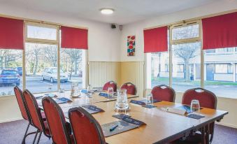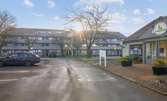 Cheap and cheerful is the best way to describe this hotel. It is situated on an industrial estate. Reception is a corner of the bar. I was greeted by a friendly member of staff when I arrived. The bar area is very clean and well spaced out. However if you arrive at the weekend at night the only food available is sandwiches or pizza and kitchen closes at 8pm.
