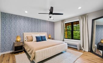 Accommodations include a spacious great room that is centered around a cozy gas fireplace. The kitchen has been fully equipped to meet your cooking needs and morning coffee while providing plenty of dining space. Kick back in the retro themed den where you can shoot some pool while you listen to vinyl records, play board games, or hang out with your family and have fun. The master suite
