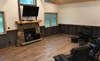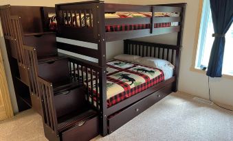 We currently have two king size beds and two triple bunk beds with full size mattresses! It's 4 bedroom and 2 baths! You will have access to the whole cabin as well as plenty of parking for vehicles and trailers with your boats, ATV s and snowmobiles! There is also an outdoor campfire area! Bring your weinies and S'mores!