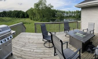 Our extended family gathered for a long weekend, the home was perfect for us! The pond was a hit for fishing and the kids loved the close by water park. Open living spaces upstairs & in the basement made it ideal for various age groups to spend time together!