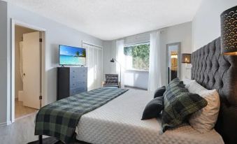 Access the condo using a personalized code and keypad at the front door. It is a self check-in process with a welcome binder upon entry.