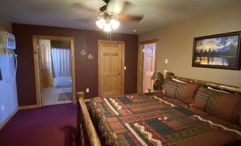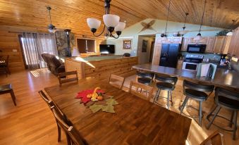 Welcome to our two level beautiful log cabin. Our main floor is inviting to all your company, and your family becomes ours. Open kitchen and family area offer room for everyone. The kitchen is fully stocked with pots, pans, basic cooking items spices, coffee maker, coffee and filters. We provide a propane grill and propane. 65" television available on both floors. You will find our master bedroom and bathroom on this level. Large walk in closet and access to the wrap around deck. Chairs and tables located on the deck to offer relaxation and entertainment with gorgeous views. We also have a washer and dryer located on this level as well.