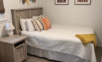 The bedrooms are both equal size, quite roomy and equipped with ceiling fans. The first bedroom has a queen bed and large dresser. The second bedroom featuring a full-size bed and closet with hangers, feel free to unpack and make yourself comfortable! There are a assortment of games to play in the dresser drawer. You will also find a blow dryer in the lower drawer for your use. *** The comforters and blankets are professionally laundered after every use, so don’t hesitate to use them!