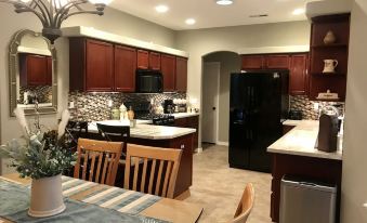 Room for everyone in this well appointed home. Master has a king bed, guestroom has a bunk with twin over full and guestroom 2 has a full bed. Home has a flex room that can be used as additional living space, a quiet corner with a desk to get that office work done, or for extra guest accommodations with a sofa sleeper that has an extra thick memory foam topper. The kitchen is well equipped and there is also gas BBQ for those homecooked meals. Home is located in the best corner of town, just a five minute drive to Tri-Cities Raceway and winery row. The Columbia River and Kadlec Medical is a ten minute drive.About pets:Pets allowed: dogs and cats less than 20 lbs per pet (limit one pet total).About checkOut:Check out before 11:00 AM.About children:Children allowed: ages 0-17.About checkIn:Check in after 4:00 PM.About smoking:Smoking is not permitted.About minBookingAge:Minimum age to rent: 23.About events:No events allowed.