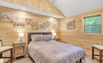 This cabin features a nature theme and provides a perfect perch for nature lovers to view birds and beautiful sunsets over the water.About pets:Pets allowed: dogs and cats (limit 1 total).About checkOut:Check out before 11:00 AM.About children:Children allowed: ages 0-17.About checkIn:Check in after 4:00 PM.About smoking:Smoking is not permitted.About minBookingAge:Minimum age to rent: 18.About events:No events allowed.