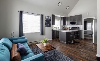 Very beautifully updated room with all the amenities I needed. Clean, quaint and very comfortable. Wonderful deck with hot tub, table and chairs. Common area has a large tv, couch, table and chairs. Also provided was a coffee/tea bar and infused water. Small bar and other coffee and snacks available for purchase. Owner very friendly, helpful, and courteous. Great place to stay!