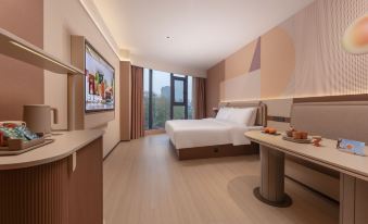 Orange Wuhu Pedestrian Street Jinghu Park Hotel is the first orange brand chain hotel under Huazhu in Wuhu. We strictly follow the four-star standard to build and decorate a luxurious business hotel. The hotel is located in Zhongshan Road Pedestrian Street, the core commercial district of Wuhu, adjacent to Jinghu Park. There are many delicious foods in the surrounding area, and the city can be reached by taking the light rail. The surrounding transportation is convenient. There are also attractions such as Jiuzi Scenic Area, Binjiang Park, and Ancient City around the hotel. The hotel has 20 above ground parking spaces and 100 underground parking spaces, making parking convenient. The hotel has 124 high-quality guest rooms, a breakfast restaurant, a 24-hour gym, and a fully equipped free laundry room to meet different needs. As a well-known "designer hotel" brand, the hotel has wireless broadband coverage in all areas, and each room is equipped with a small voice intelligent speaker, a 65 inch large screen ultra clear TV, an intelligent toilet, a tropical rainforest showerhead, and a fully sensing switch experience. Whether you are on a business trip or a vacation, this is your ideal place to stay.