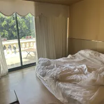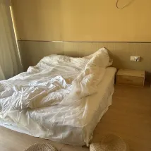 Antwort der Unterkunft: 入住期間,如您有任何問題,可隨時與我們聯繫。我們會在您入住前聯繫您,發送路線圖及攻略。您也可以通過語音或聯繫電話聯繫我們,我們將立即出現為您解決問題。前台設有服務鈴和聯繫電話,以便隨時為您提供服務。關於窗簾,我們設計的是木簾,可以調整光線亮度,具體可參考圖4。一次性床上用品方面,我們在純棉被套上額外增加了成本,如您不喜歡,可以拆除,裏面就是純棉四件套。我們設有洗衣房、烘乾機及衣服晾曬區域,因此房間內不放置衣架。如有需要,請隨時聯繫我們,我們會幫您晾曬。關於進出的樓梯,台階一共24個……這是咱們別墅設計哈……為響應號召,我們不主動提供一次性六小件,但如您需要,請放心,我們會為您提供必備的用品。另衞生不好…… 咱們會認真反省。也會加強咱們的衞生自查,哪裡不好改哪裡,期待您下次入住。下水道反臭,咱們進行排查,房間均有防臭蓋,但咱們也第一時間進行沖水消毒。感謝您的寶貴意見,未能現場與您溝通,瞭解您的需求,非常遺憾。新年快樂,祝您旅途愉快哈