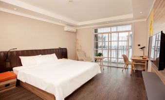 Our hotel is located in the heart of Xinyang City, diagonally across from Qiansheng Department Store, within the core business district near the train station. A **5-minute walk** will take you to **Xinyang Railway Station South Square**, **Hongyun Bus Station**, **Tianrun Plaza**, and **Xinyang Central Hospital**. **Xinyang Railway Station North Square** is a **10-minute walk** away. A **10-minute taxi ride** or a direct shuttle bus from the train station square (25-minute ride) will take you to **Xinyang East High-Speed Rail Station**.
