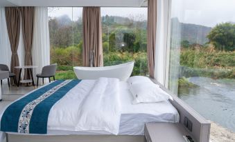 非常推薦這家民宿,房間很大很寬敞,在房間內就能看到好山好水。老闆自己炒菜的,有餐廳。民宿門前就是一條溪流,隨時玩水,摸螺抓小魚。民宿老闆在溪流準備了一條竹筏免費給客人玩的。我們租了三間房玩了兩天三晚,衹有第二天外出遊玩,中午沒在民宿這裏吃飯。其餘時間都待在民宿這裏。老闆自己有養雞養魚,泡的葡萄酒好喝呀,臨走的時候買了兩斤半走。早午晚吃的都非常棒,很適合廣東口味,有家庭味道,吃了這麼多餐都不會厭倦反而流連忘返。晚上去逛興坪古鎮,第二天出去玩,老闆還開車接送,好暖的服務呀。整個路程都很舒心,人情味十足,真的很像家的感覺,推薦,必須二刷三刷。