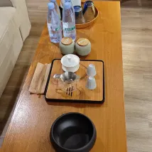 Insgesamt war die Erfahrung sehr gut und der Service war sehr rücksichtsvoll. Sobald wir im Hotel ankamen, bekamen wir eine Tasse Ingwer-Datteltee, mittags gab es Snacks und es gab ein reichhaltiges und natürliches Frühstück Am Morgen gab es auch einen Fußeimer zum Entspannen, und ich glaube, dass es im Sommer schöner sein wird, wenn die Lotusblumen in voller Blüte stehen.