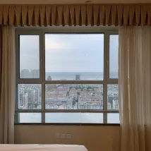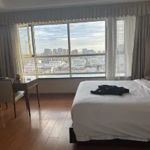 Sehr gute Unterkunftserfahrung. Die Lage ist im Herzen des Entwicklungsgebiets und nicht weit vom Meer entfernt. Die Aussicht auf die Hochhäuser ist auch bei Nacht wunderschön . Das Servicepersonal räumte das Zimmer auf und stellte fest, dass die Toilette kalt war. Sie ergriff die Initiative, die Kleidung der Kinder zu den Wäscheständern zu bringen und hinterließ eine kleine Nachricht für meine Kinder Ehemann, und es war eine tolle Erfahrung, im Stillen Dienste zu leisten.