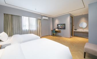 入住後覺得該酒店性價比高,且又有充電樁便於出行的住客甲用車方便充電。房間的空間顯得唬敞欠.,缺點是隔音效果不是很好,總體感覺住的還是很滿意,點個好評。