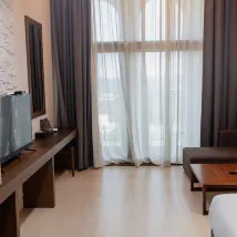 Выбирали этот отель из-за удобной локации к детскому парку. Номер большой, комфортный, но сантехника требует замены: смеситель в раковине и душе был неисправен (протекал). В остальном было приятно находиться в номере. Я покупала номер с завтраком, но на ресепшене сказали, что завтрак не включен. Очень странно. Пришлось доплатить за завтрак. Слава Богу, завтрак был очень аппетитный и сытный. Думаю, что в следующий раз снова сделаю выбор в пользу этой гостиницы.