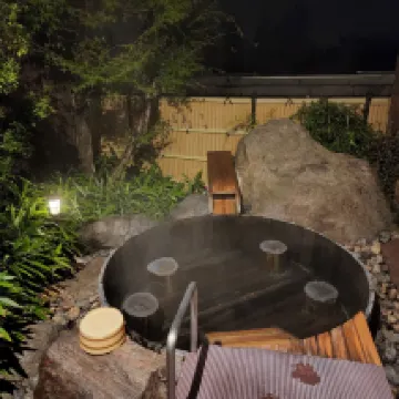 Nice hotel with private onsen, dinner and breakfast. The hotel provides free pick up from Yufuin train station by calling.