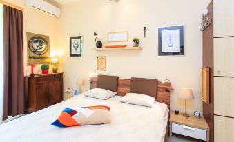 Across the Flower Square, in Zagreb’s high street Ilica 12 near Hotel Jagerhorn, there is a newly renovated 65 square meters apartment. It is located on the third floor of a residential building with an elevator, balcony and a quiet view of the forest. This functionally furnished apartment has two bedrooms (double beds 180×200 cm and 140×200 cm), a kitchen and a spacious living room with an additional bed/chaise longue for two persons. Every room has a satellite TV and a micro line. Air condition, minibar, Wi-fi and a media centre to check your emails, naturally, go without saying. The apartment is characterised by vintage charm with present-day functionality. This property is managed by the owner unlike similar listings in the city center which are managed by rental companies. Each guest is treated individually to ensure the quality of service.About pets:No pets allowed.About checkOut:Check out before 11:00 AM.About children:Children allowed: ages 0-17.About checkIn:Check in after 2:00 PM.About smoking:Smoking is not permitted.About events:No events allowed.