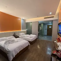 Die Steppdecke und das Kissen im Zimmer hatten einen starken Geruch und ich konnte nicht schlafen, was Allergien auslöste. Ich rief an der Rezeption an, um die Steppdecke und das Kissen auszutauschen. Die Klimaanlage war nicht kühl genug. Ich habe das Zimmer gewechselt und die Steppdecke hatte auch einen eigenartigen Geruch. Ich weiß nicht, wie die Hoteltante die Bettwäsche gewechselt hat oder was der Grund dafür war. Die Steppdecken in den beiden Zimmern, die ich gewechselt habe, hatten einen eigenartigen Geruch. Nachts waren an der Rezeption zwei Jungen im Dienst und einer von ihnen hatte eine schlechte Einstellung. Ich hatte dieses Hotel gebucht, als ich zuvor nach Zhuhai kam, und diese Situation war nie eingetreten. Diese Erfahrung war äußerst schlecht. Ich werde dieses Hotel bei meinen nächsten Reisen nicht mehr wählen.