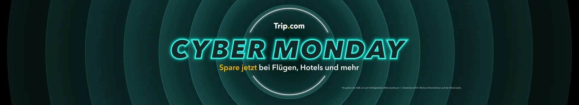 AKTIONSPLATTFORMEN: Trip.com App, Trip.com Website und mobile Website. AKTIONSZEITRAUM: Die Aktion beginnt am 24.11.2025 um 00:00 Uhr (GMT+1) und endet am 03.12.2025 um 23:59 Uhr (GMT+1).