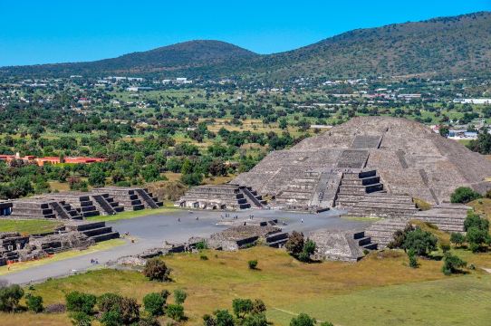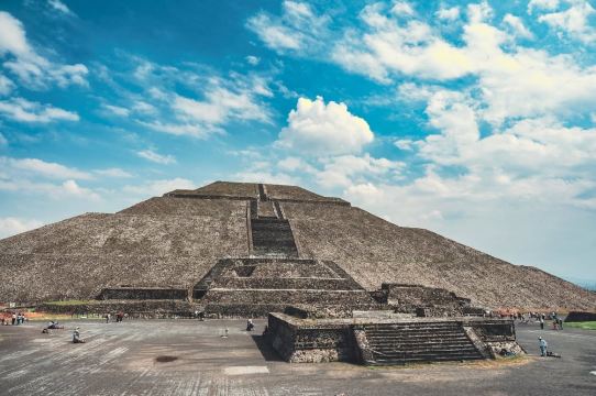 ▲ Die Sonnenpyramide von Teotihuacán ist das Herzstück der antiken Stadt Teotihuacán und eine der größten noch erhaltenen Pyramiden Mittelamerikas. Diese beeindruckende Struktur wurde etwa im 2. Jahrhundert n. Chr. erbaut, ist 65 Meter hoch und verfügt über eine weitläufige Grundfläche, die die architektonische Weisheit der altindianischen Zivilisation zeigt. Touristen können die steinernen Stufen bis zur Spitze der Pyramide hinaufsteigen, um von dort aus die gesamte antike Stätte und die im Hintergrund liegende Mondpyramide zu überblicken und die feierliche Atmosphäre des alten Zeremonialzentrums zu spüren. Ein Besuch in den frühen Morgenstunden wird empfohlen, um der Mittagshitze zu entgehen und gleichzeitig den Panoramablick auf die Ruinen zu genießen.