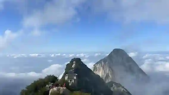"West up, North down" Durchquerungsroute: Nehmen Sie die Seilbahn zum Westgipfel, um Kraft zu sparen, wandern Sie über den Südgipfel und Ostgipfel zum Nordgipfel, um effektiv die Hauptattraktionen des Mount Huashan zu erkunden und Rückwege zu vermeiden.