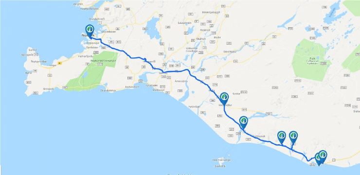 Referenzroute: Reykjavik – Solheima-Gletscher – Reynisfjara Black Beach – Vik – Skógafoss – Seljalandsfoss – Reykjavik