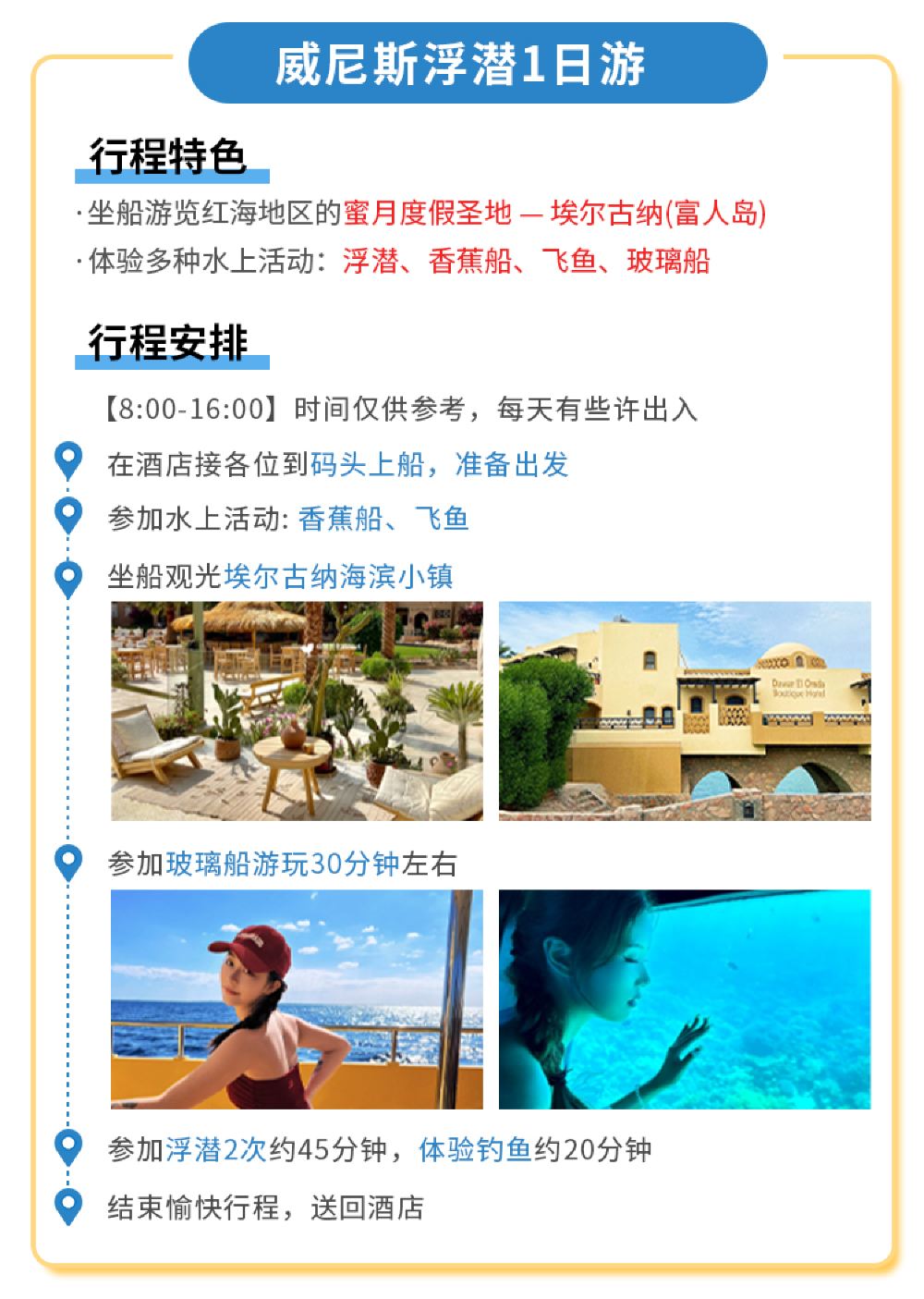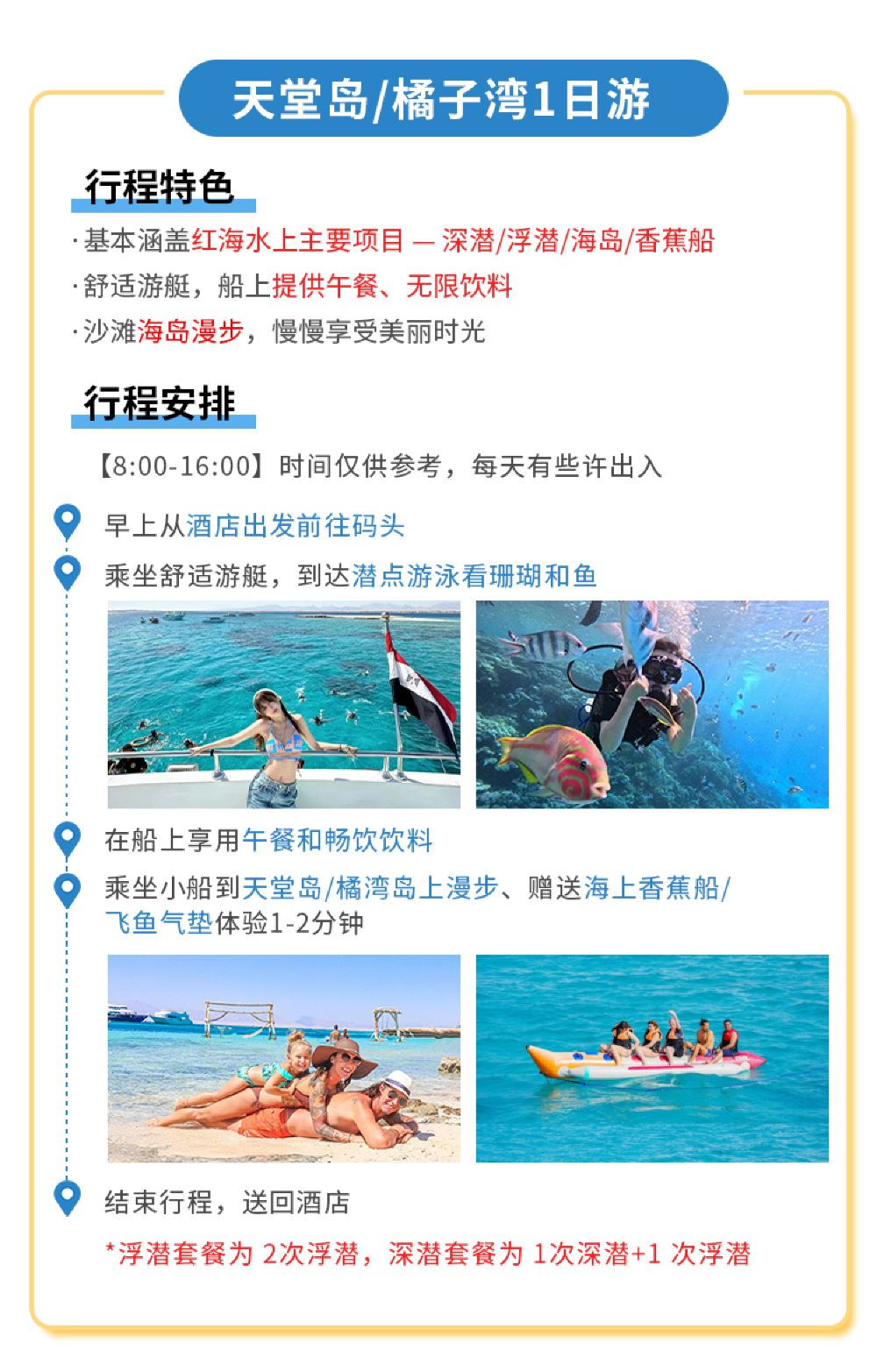 [Tauchen/Schnorcheln, Glasboot, Bananenboot, Strand- und Inselspaziergang]