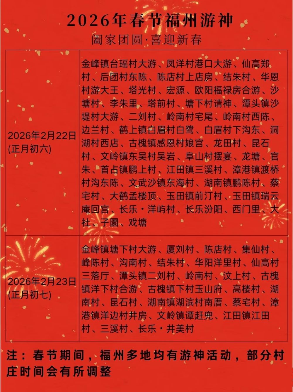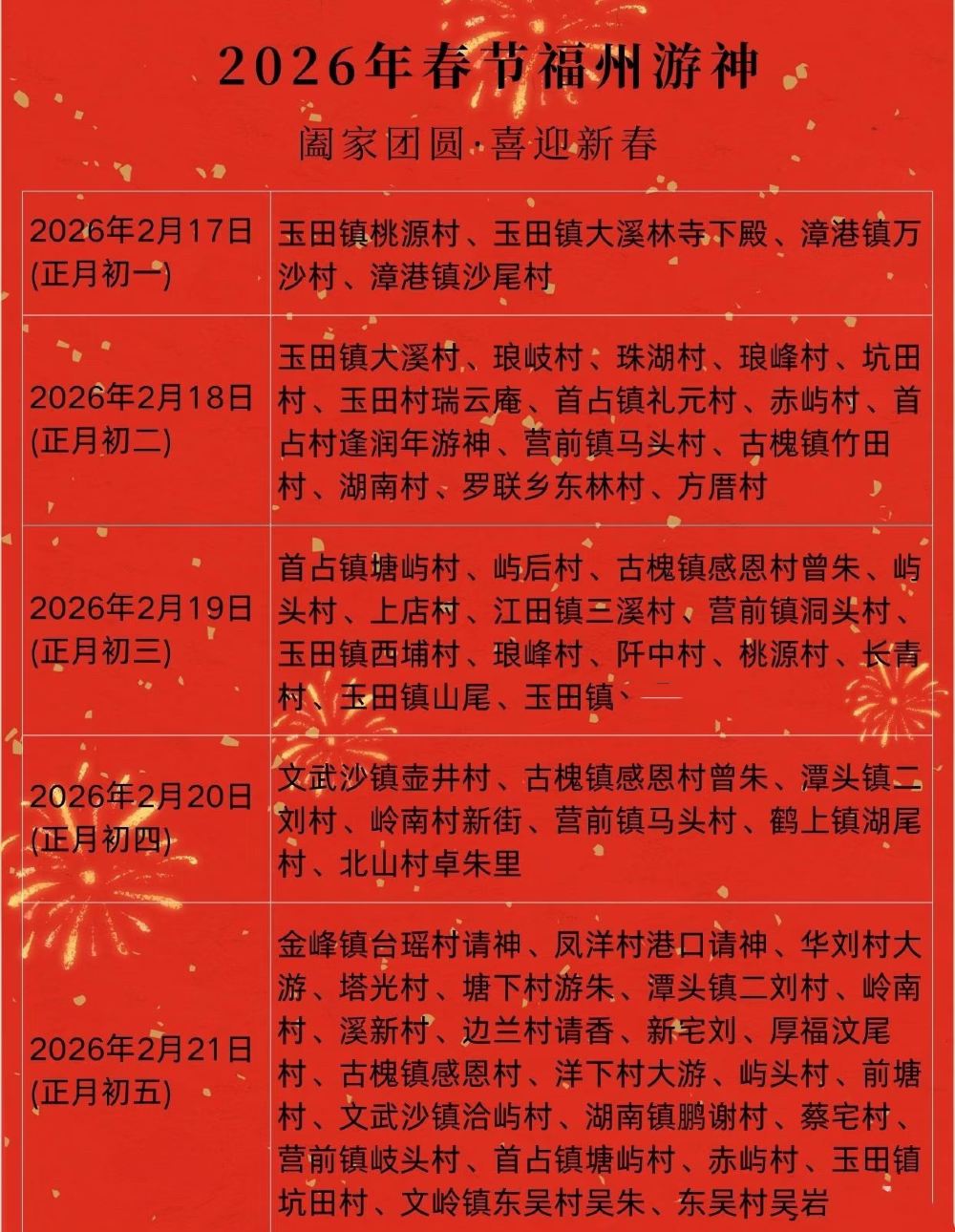 ▲ Hinweis: Während des Frühlingsfestes finden in vielen Teilen von Fuzhou Veranstaltungen zur Götterprozession statt. In einigen Dörfern können die Zeiten angepasst werden. Die genauen Details richten sich nach den Anweisungen der örtlichen Meister am jeweiligen Tag! Bewahren Sie Ehrfurcht: Die Götterprozession ist eine Veranstaltung des Volksglaubens. Bitte vermeiden Sie Lachen, Herumalbern oder das Zeigen auf die Götterstatuen, um respektloses Verhalten gegenüber den Statuen oder Ritualen zu vermeiden. Berühren Sie nichts willkürlich: Das Berühren von Götterstatuen, Tragsesseln oder Ritualgegenständen ist strengstens verboten. Stellen Sie sich nicht vor die Statuen oder behindern Sie die Prozession. Halten Sie sich an die Ordnung der Prozession: Dringen Sie nicht in die Prozession ein, drängeln oder lärmen Sie nicht und folgen Sie den Anweisungen der Veranstaltungsleiter.