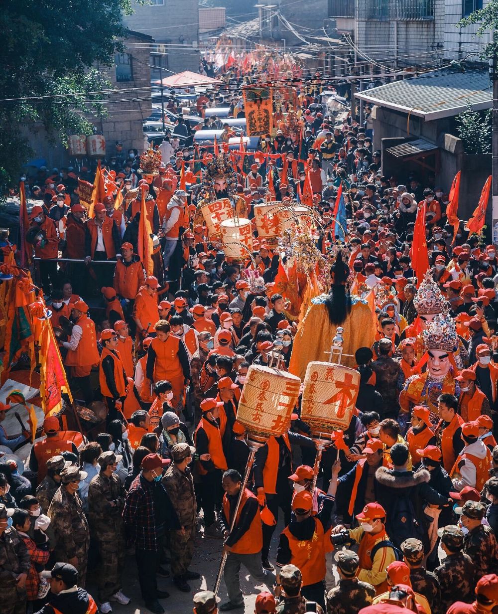 ▲ Ab dem ersten Tag des neuen Mondjahres findet in Changle täglich eine Prozession statt, die in unterschiedlichen Größenordnungen, aber mit großer Ehrfurcht abgehalten wird. Tipps für die Ausrüstung zur Götterprozession: Vor Ort gibt es ununterbrochen Feuerwerkskörper, daher unbedingt eine Maske tragen!!! Lange Kleidung, lange Hosen, eine Mütze, und vermeiden Sie es, neue Kleidung zu tragen (vor Ort gibt es viel Räucherwerk und Feuerwerkskörper). Es wird empfohlen, Ohrstöpsel oder geräuschreduzierende Kopfhörer zu tragen (die Feuerwerkskörper sind extrem laut). Vermeiden Sie es, die Götterstatuen nachzuahmen, bewahren Sie Ehrfurcht und zeigen Sie nicht mit dem Finger auf die Götterstatuen. Die Opfergaben auf den Altären der Dorfbewohner entlang des Weges sind für die Götter bestimmt – nehmen Sie sie nicht.