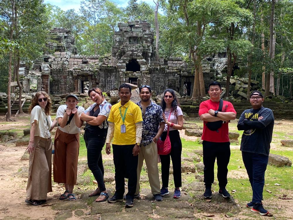 ▲ [ Nächster Halt ] Ta Prohm: Spazieren Sie durch den geheimnisvollen Dschungeltempel, der von mächtigen Baumwurzeln umschlungen ist.