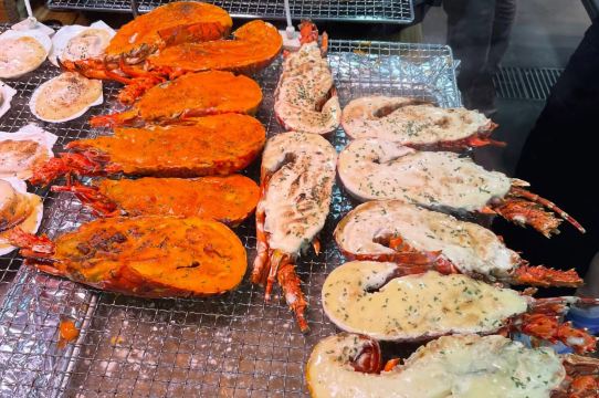 ▲ [Fischmarkt Itoman] In der Nähe des Fischereihafens Itoman gibt es täglich frische Fänge – von Sashimi über gegrillten Fisch, Garnelen bis hin zu Muscheln... die Auswahl ist besonders vielfältig!