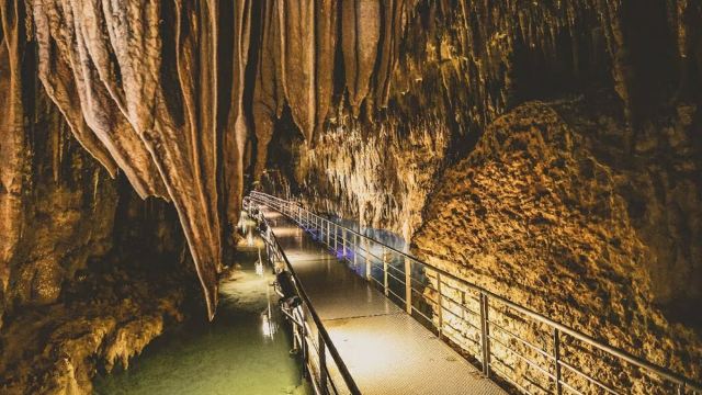 ▲ [Okinawa World, Gangala-Höhle] Sie ist eine der größten natürlichen Tropfsteinhöhlen in den Ryukyu-Inseln. Als eine der berühmten Sehenswürdigkeiten von Okinawa ist die Gangala-Höhle für ihre beeindruckenden Tropfsteinformationen und den geheimnisvollen unterirdischen Fluss bekannt.