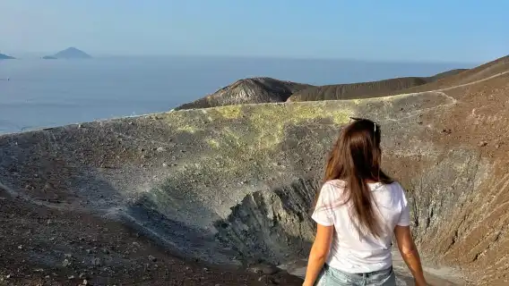 Genießen Sie einen malerischen Weg mit atemberaubender Aussicht auf Lipari, während Sie Vulcano erkunden