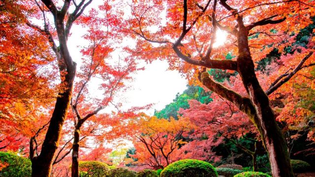 ▲ ▼ Kyūnen-an (Gesamtdauer ca. 80 Minuten, freie Verfügung, Tickets und weitere Kosten sind selbst zu tragen) Kyūnen-an befindet sich in Kanzaki, Präfektur Saga auf Kyushu, Japan. Es ist ein privates Anwesen und Garten aus der Meiji-Zeit, benannt nach seinem Besitzer Itami Yatarō, der neun Jahre an der Gestaltung arbeitete. Der Garten ist ein klassischer japanischer Spaziergarten mit kunstvoller Landschaftsgestaltung, moosbedeckten Flächen und ganzjähriger Schönheit, wobei die Herbstfärbung besonders atemberaubend ist. Geöffnet nur von Mitte bis Ende November, wird er als „traumhaftes Ahornparadies Kyushus“ gepriesen. Rote Ahornbäume verschmelzen mit historischen Gebäuden und Moosgärten zu einem friedvoll-eleganten Herbstgemälde. Ticket: 1.000 Yen (für Oberschüler und Erwachsene).