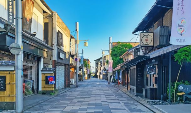 Omotesando Spaziergang: Entdecken Sie kleine Läden am Byodoin Temple Omotesando, wo Matcha-Leckereien und handgefertigte Souvenirs auf Sie warten.